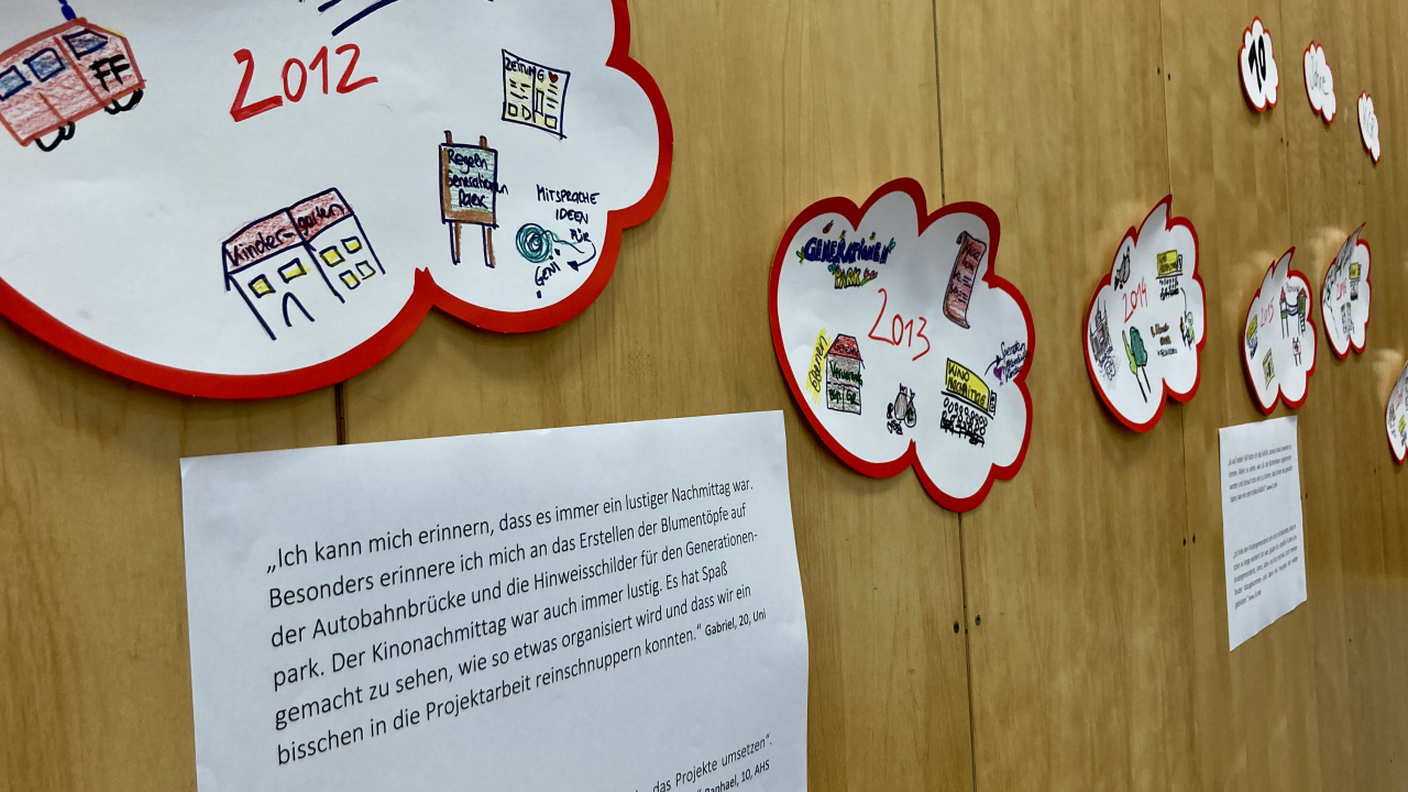 Im Vorfeld wurden auch ehemalige Kindergemeinderät:innen über ihre Zeit von damals interviewt. Auf die Frage nach der Bedeutung von Kinderpartizipation meinte ein Jugendlicher, mittlerweile 18 Jahre alt: „Ich fand es cool, dass man so jung schon mitbestimmen kann. Ich denke, es ist wichtig schon früh zu lernen, wie man richtig diskutiert und als Team Entscheidungen trifft… und ja, ich denke, es ist gut, dass die Jungen mitentscheiden, sie leben ja auch hier.“